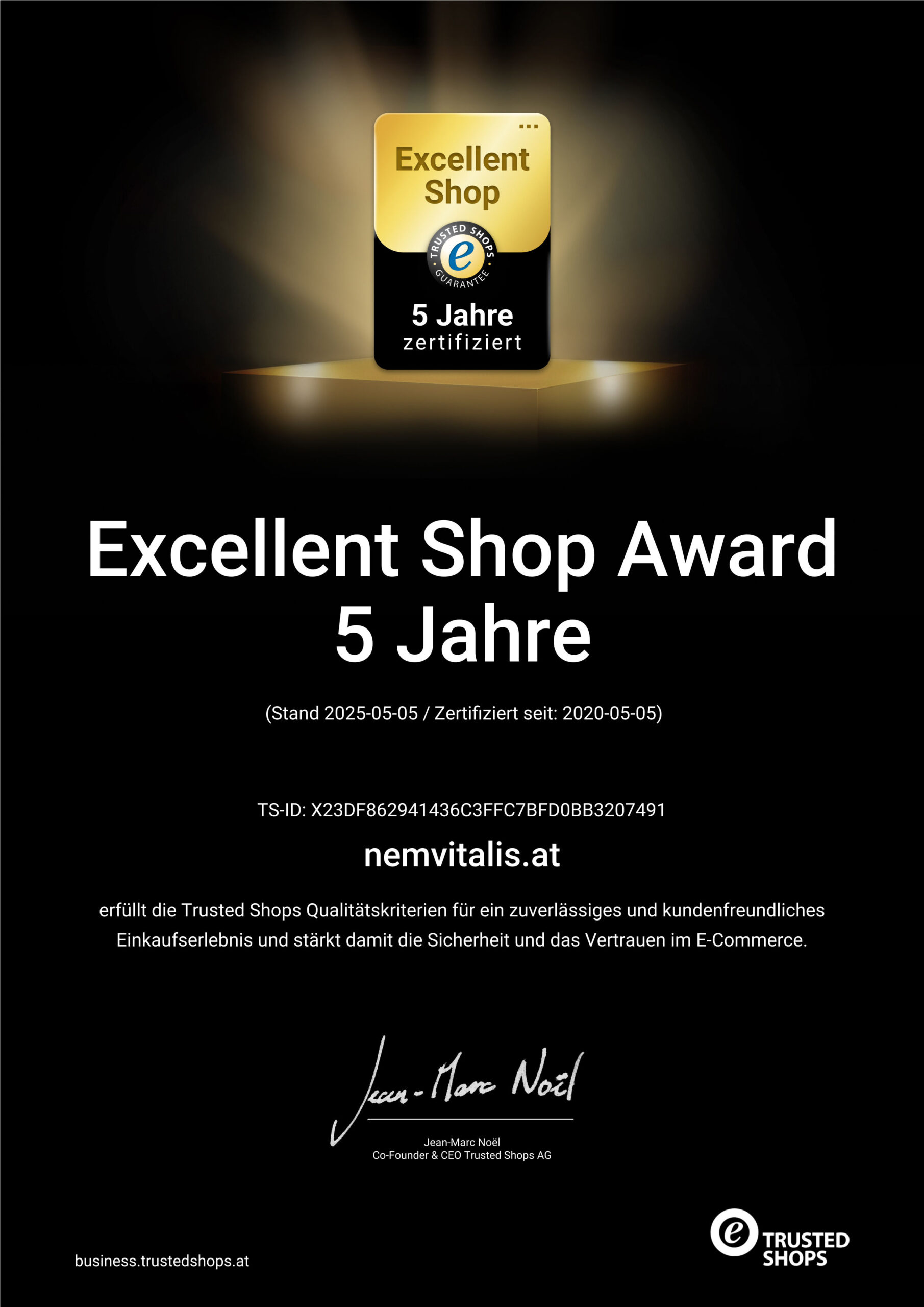 Online einkaufen ist Vertrauenssache. Gerade bei Gesundheits- und Vitalstoff-Produkten wollen Kundinnen und Kunden sicher sein, dass hinter dem Shop ein seriöses Unternehmen, transparente Prozesse und ein verlässlicher Service stehen. Genau hier setzt Trusted Shops an – und nemvitalis.at erfüllt die strengen Qualitätskriterien, die für das Gütesiegel nötig sind. Damit wird aus einem guten Einkaufserlebnis ein rundum abgesichertes.